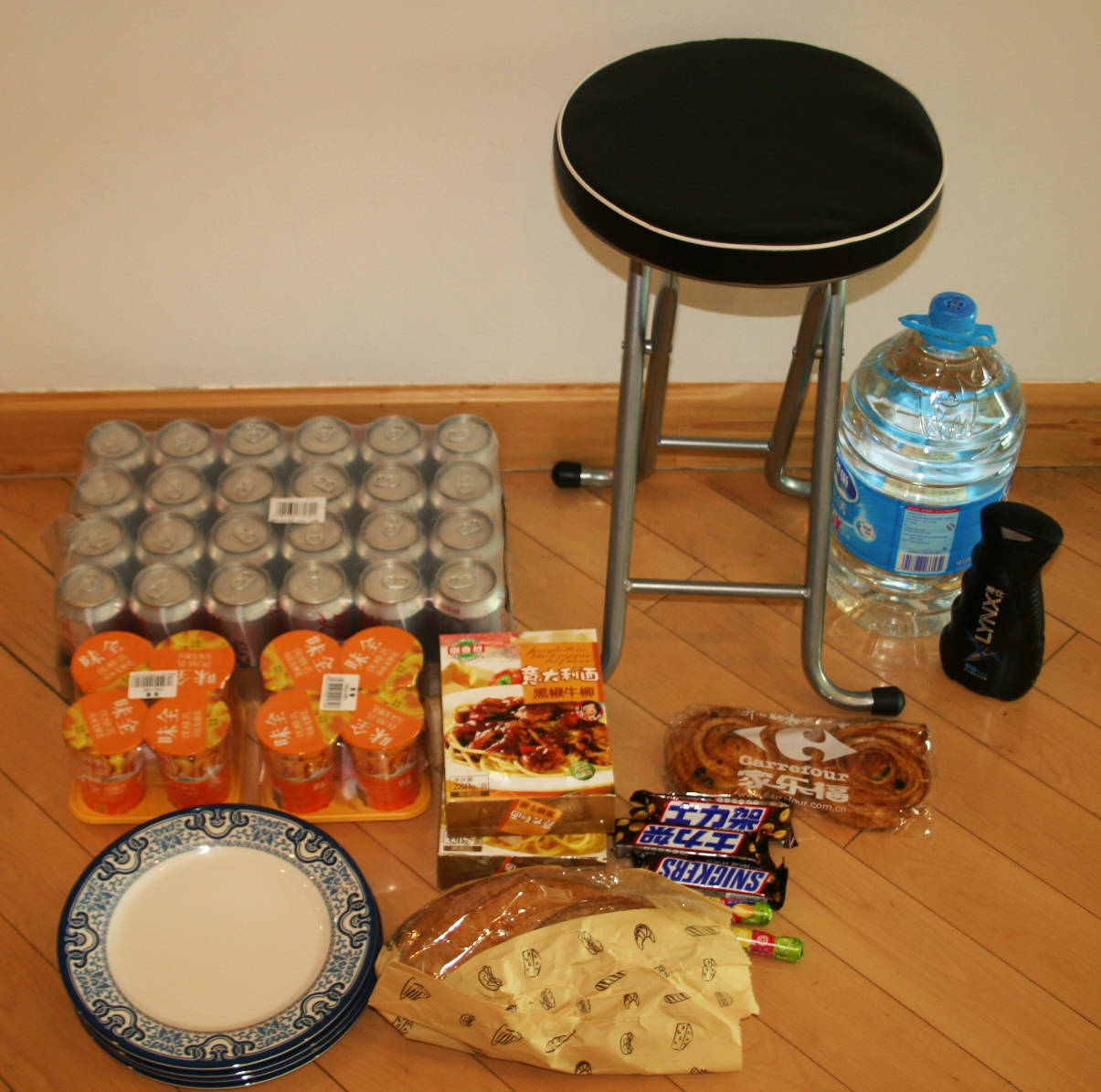 Ich versuche mich in dieser Kunst und nehme unvorsichtigerweise nur einen Motorradkoffer mit, um nicht zwei durch den Carrefour transportieren zu müssen.