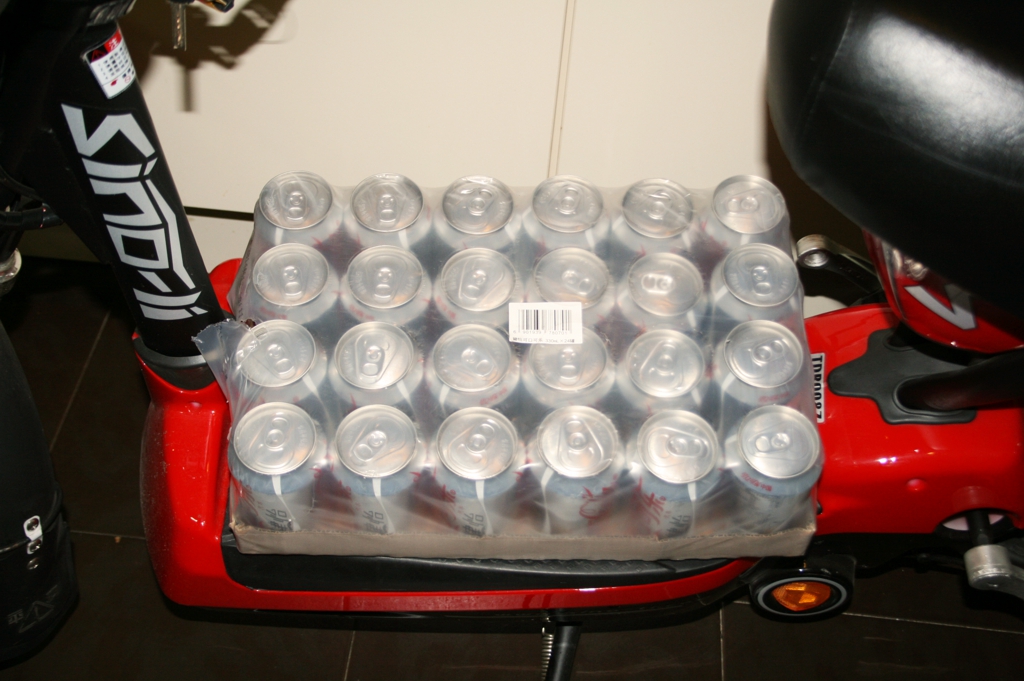 Beim Beladen des Rollers mit einer 24-Stück-Packung Cola light zeigt sich die Genialität der Konstruktion des Akkufachs des natürlich herausnehmbaren Lithium-Akkus: