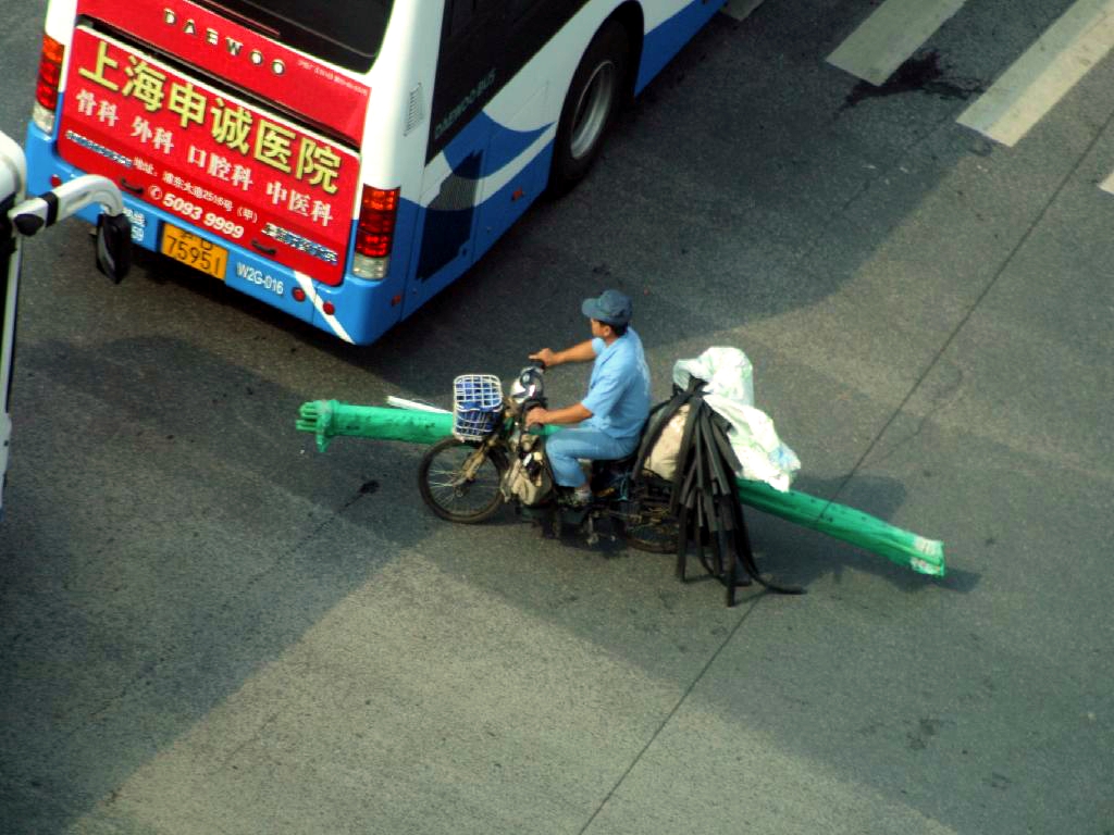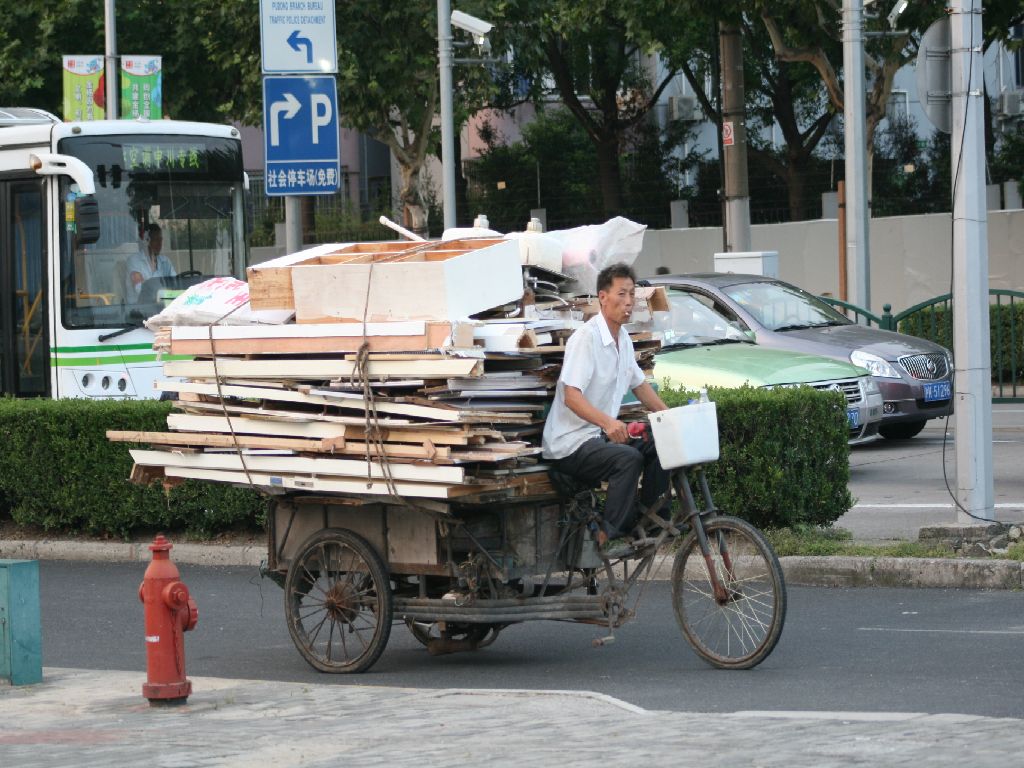 In China kann fast alles auf zwei oder drei Rädern transportiert werden. Das richtige Beladen ist dabei eine Kunst, die in China lange Tradition hat.