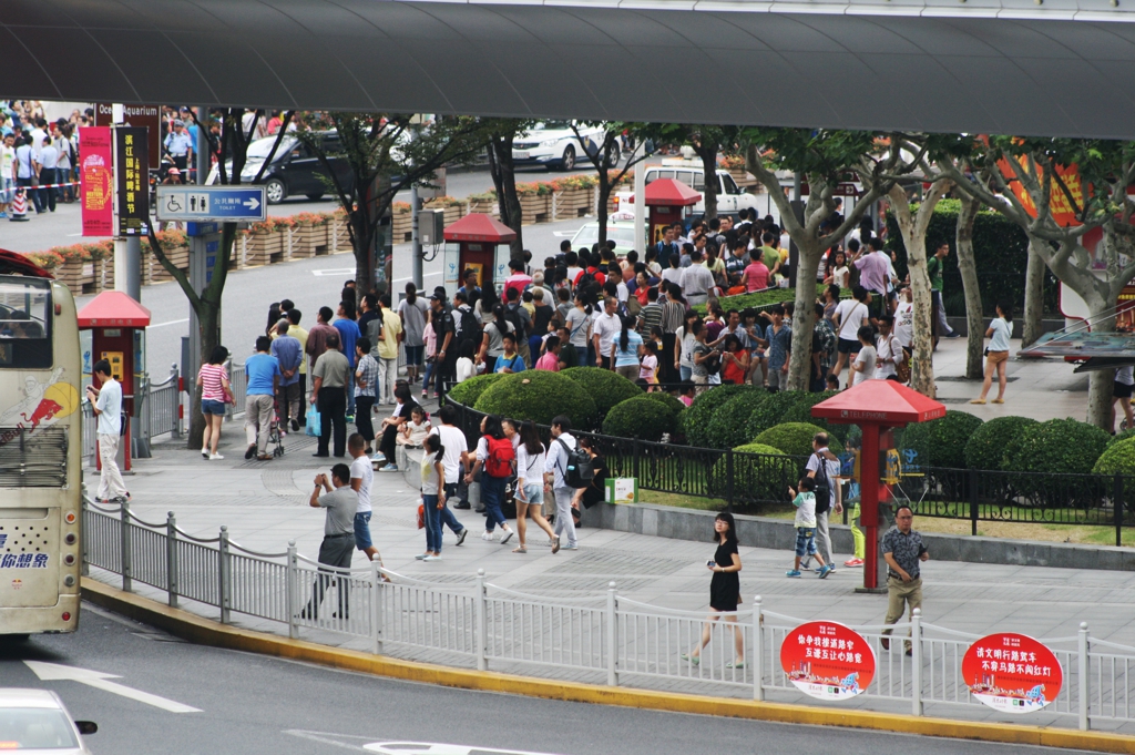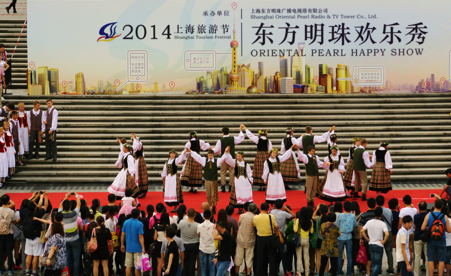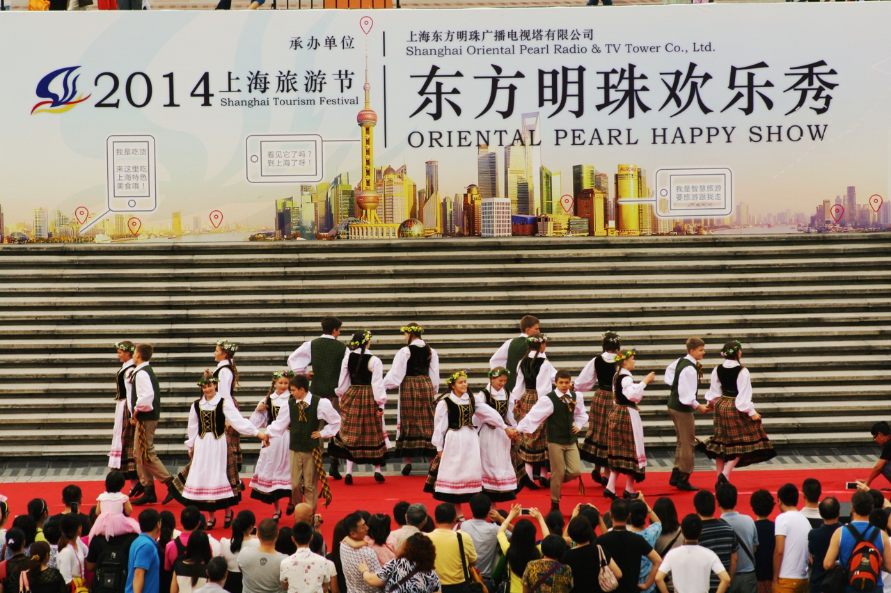 Am Oriental Pearl Tower fand heute eine Show mit Blasmusik und volkstümlichen Tänzen statt. Die Tänzer kamen augenscheinlich aus Europa, die Musiker allerdings aus China.