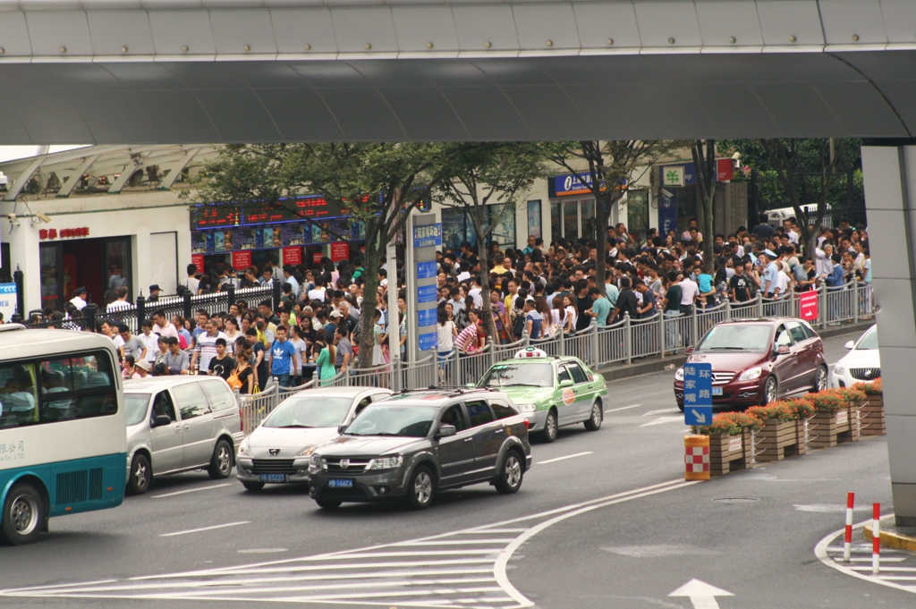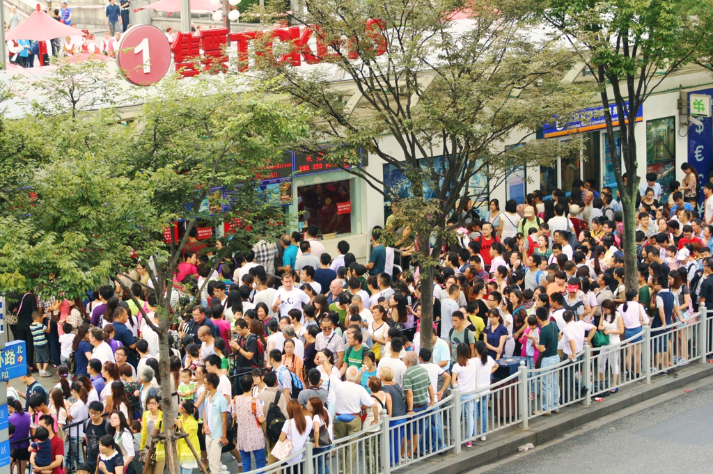 Das Interesse war groß: hier die Menschen am Ticketschalter: