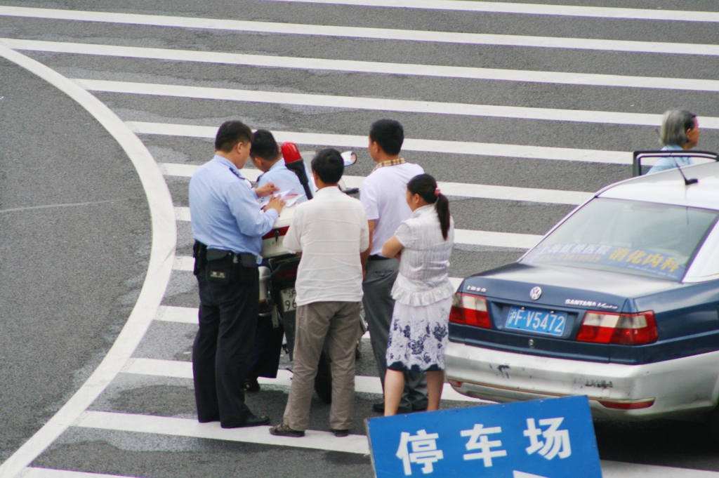 Untern vorm Tearl Tower ein Unfall, die Polizei nimmt die Sache auf,