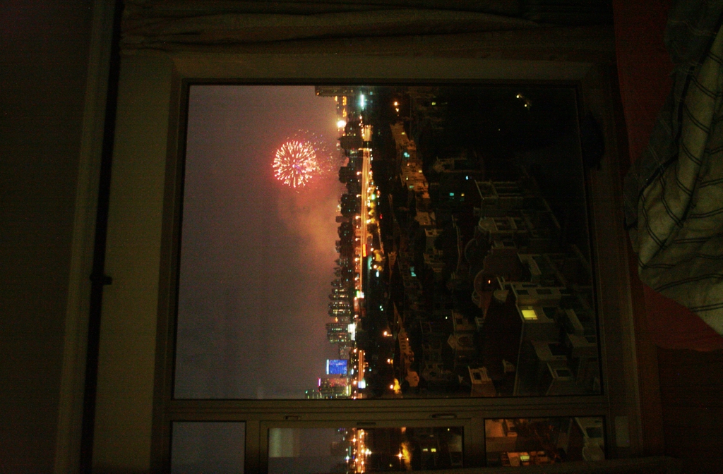 Shangai begrüßt mich mit einem Feuerwerk vor dem Schlafzimmerfenster. Das nenn ich mal Service!