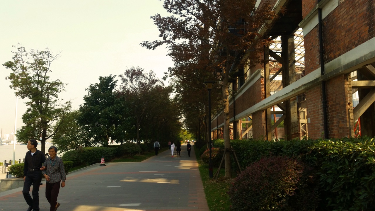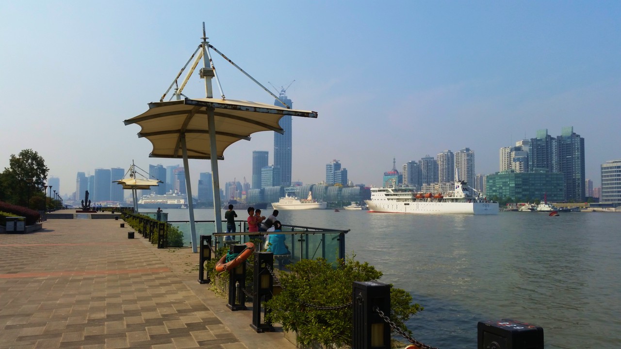 Mittags ein Spaziergang am Huangpu-River direkt neben dem Büro. Eine wunderschöne, fast menschenleere Promenade. Einige Leute fischen hier mit filigranen Netzen nach kleineren Fischen. Das ist natürlich verboten, aber hier kommt normalerweise keine Polizei vorbei.