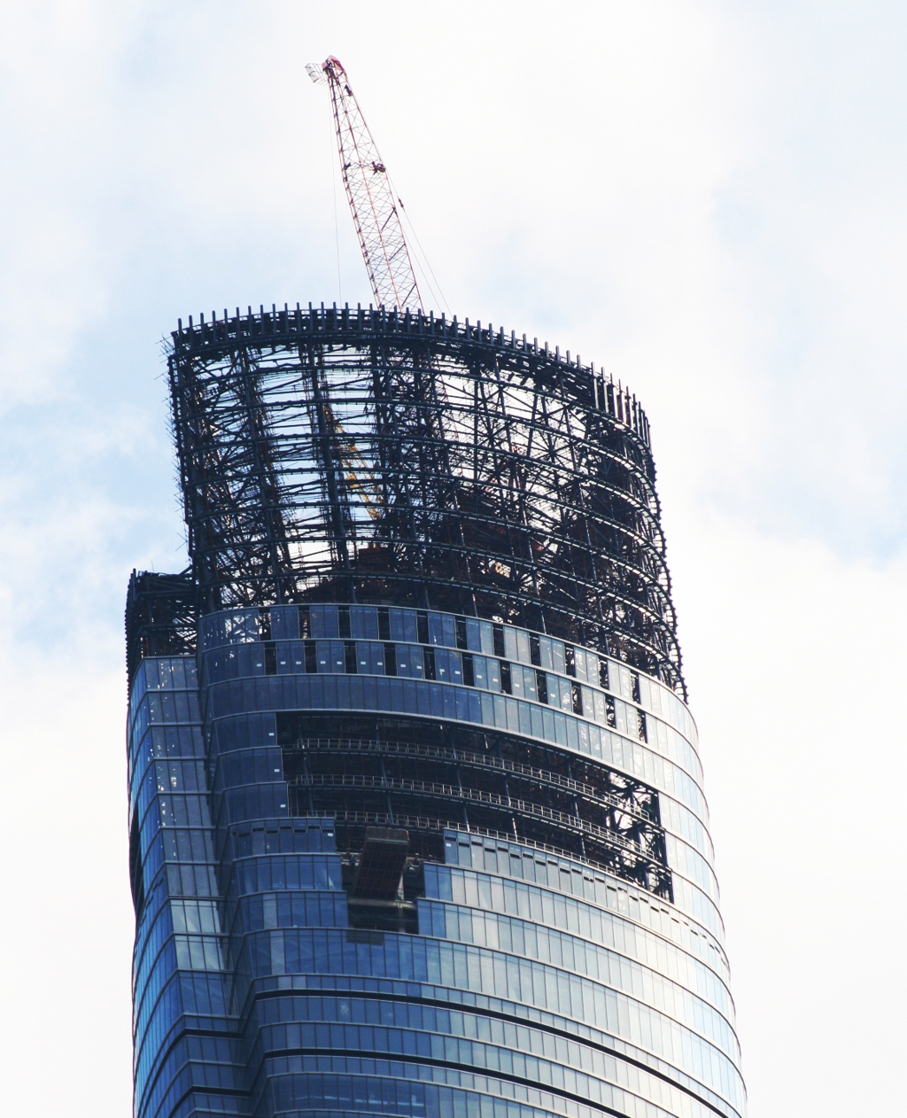 Der 637m-Turm geht allmählich der Vollendung entgegen. Viel fehlt jetzt nicht mehr. Nachts sieht man die Bürobeleuchtung schon bis auf ca. 500m Höhe.