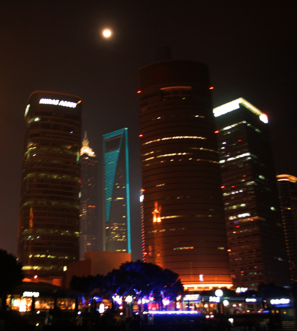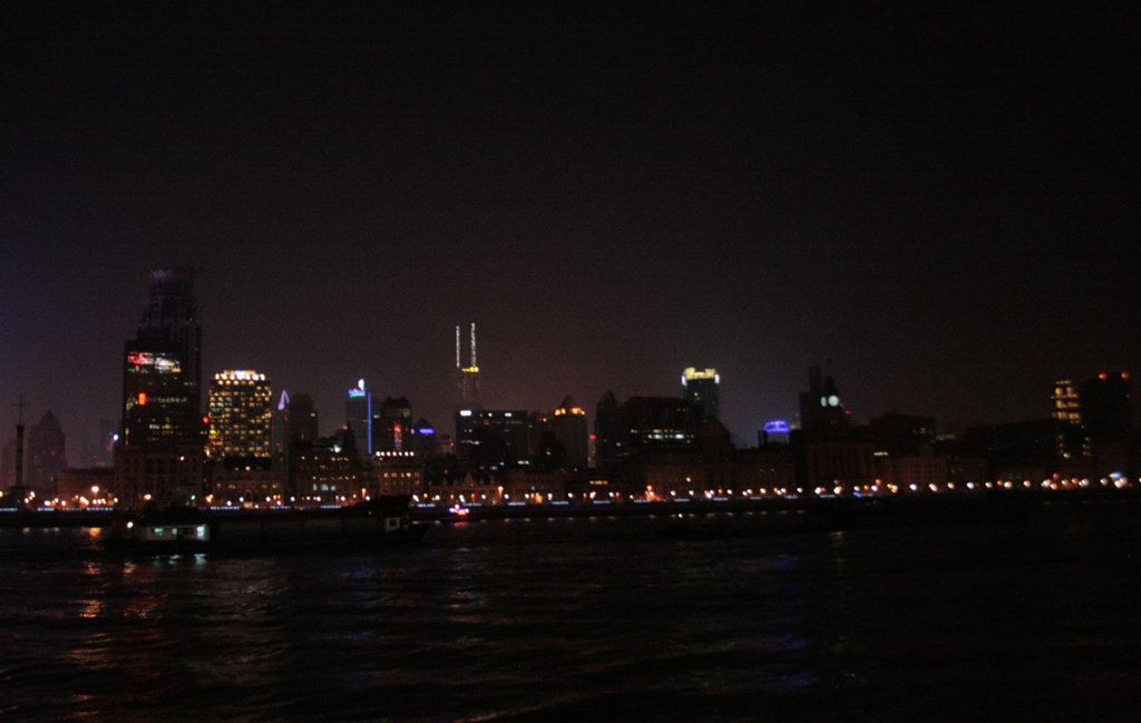 Zum erstenmal ist die gesamte Beleuchtung am Oriental Peral Tower, den Hochhäusern um das Aurora-Gebäude und gegenüber am Bund abgeschaltet.