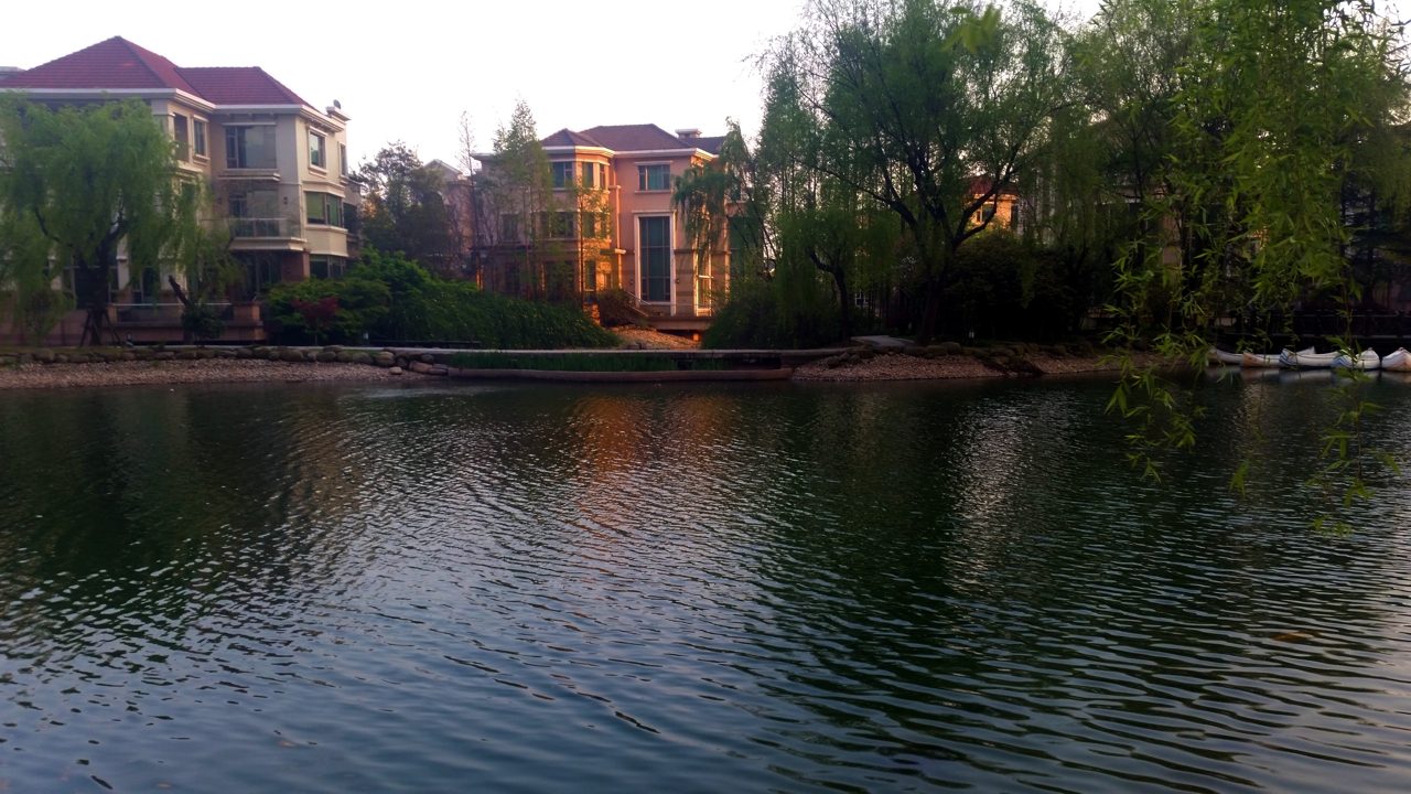 Shimao Lakeside Garden liegt in der Abendsonne. Eine Oase der Ruhe in einer 24-Millionen-Einwohner-Stadt.