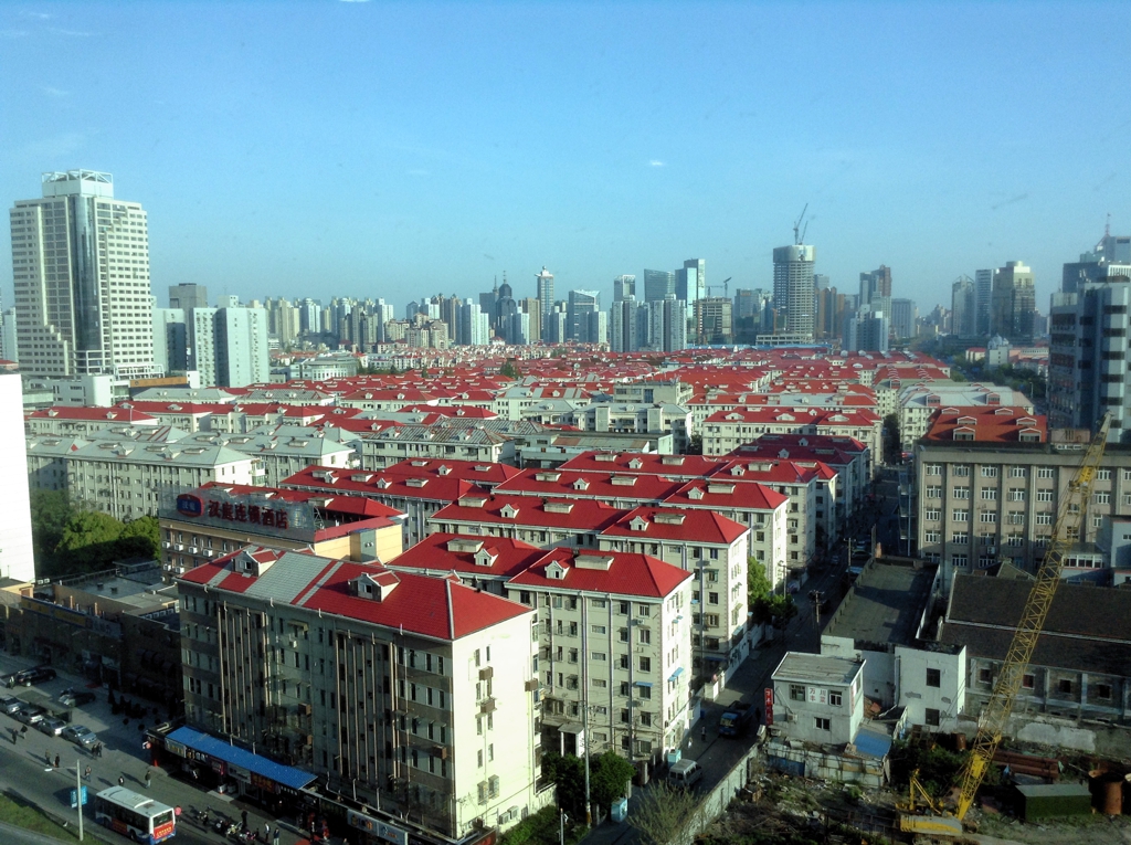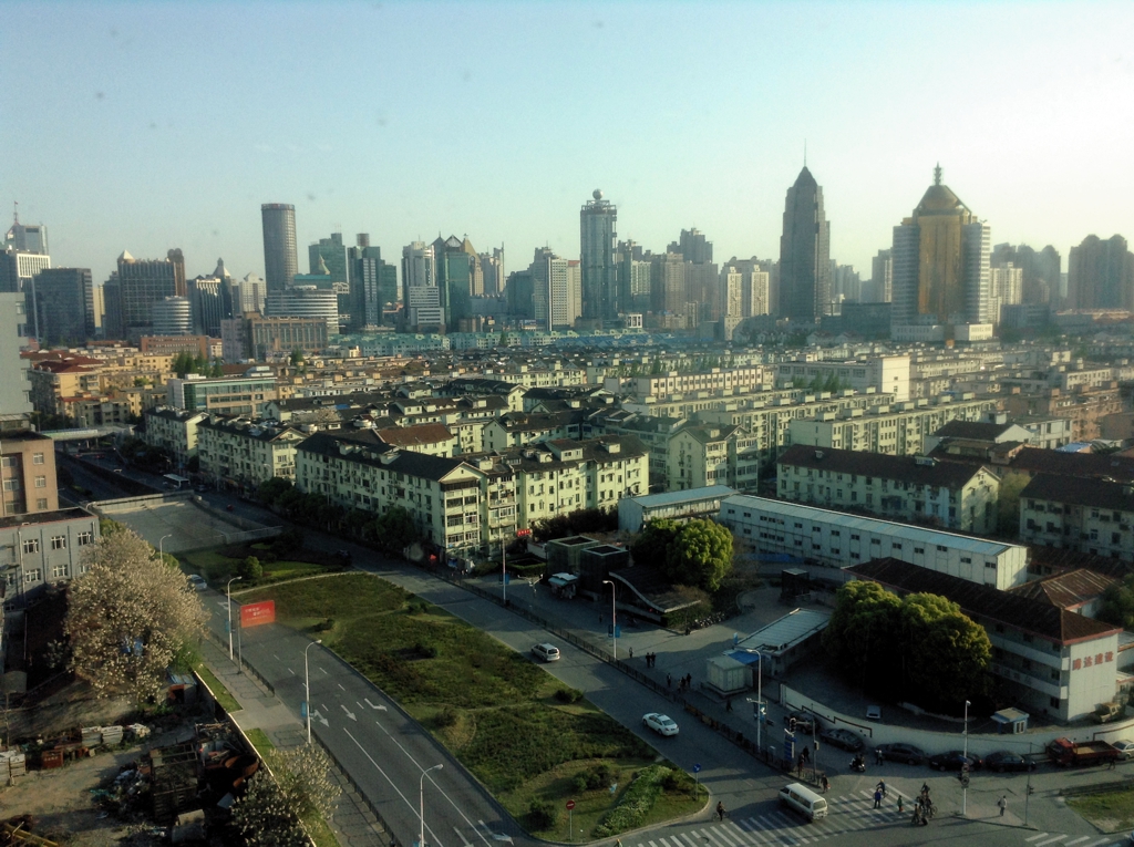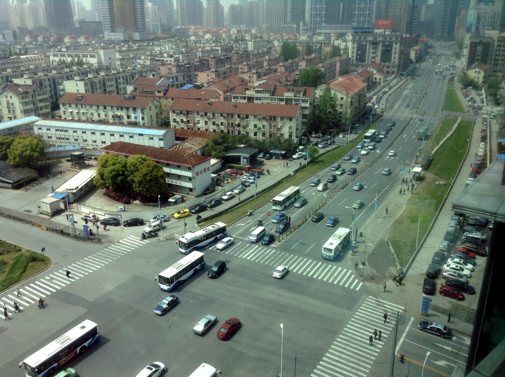 Der Grünstreifen rechts bedeckt übrigens die Einfahrt zum Tunnel unter dem Yangtze durch, den ich heute zum ersten mal im Taxi befahren habe.