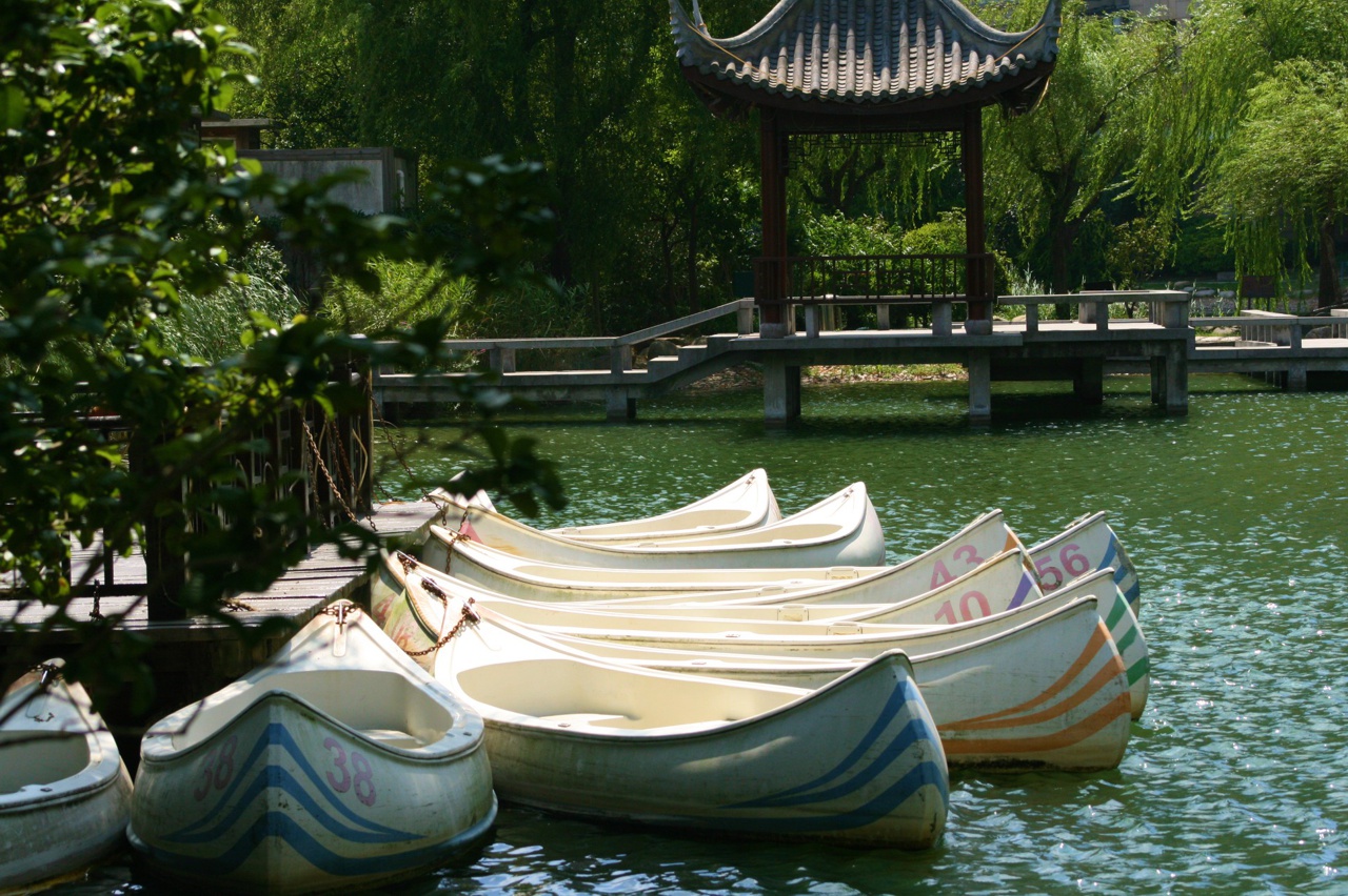 Shimao Lakeside Garden liegt in der Abendsonne. Eine Oase der Ruhe in einer 24-Millionen-Einwohner-Stadt.