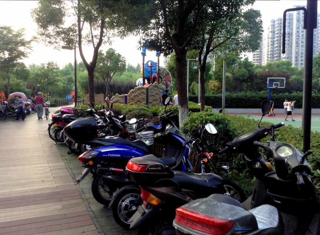 Gleich gegenüber wird der Roller geparkt. Dadurch hat man ihn immer im Blick.
