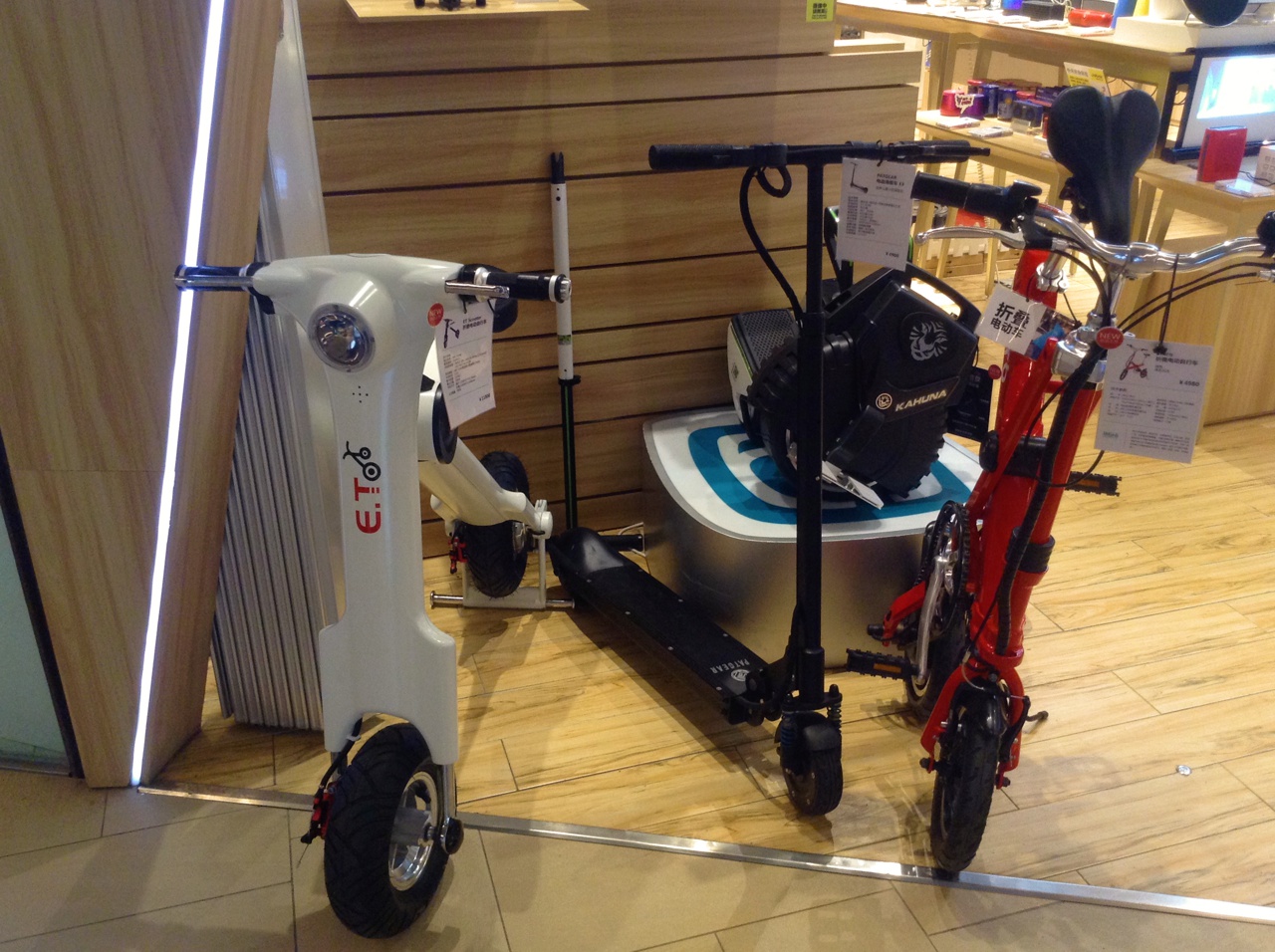 Hier gibt es diverse Faltbikes, Roller, selbststabilisierende fahrbare Untersätze mit ein oder zwei Rädern.