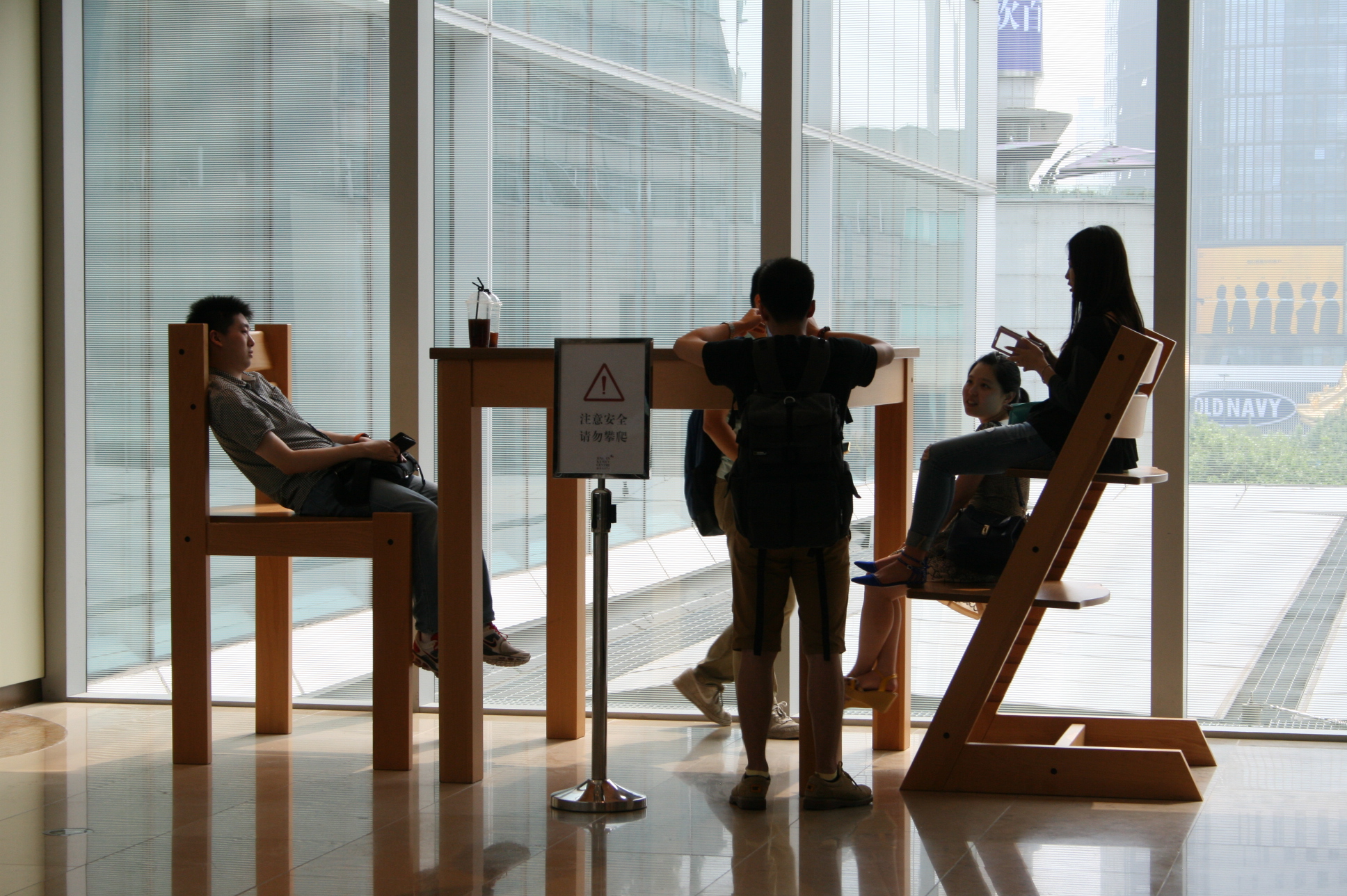 Hier hat man Tisch und Stühle aufgebaut, damit Erwachsene die Welt aus Sicht der Kinder sehen können.