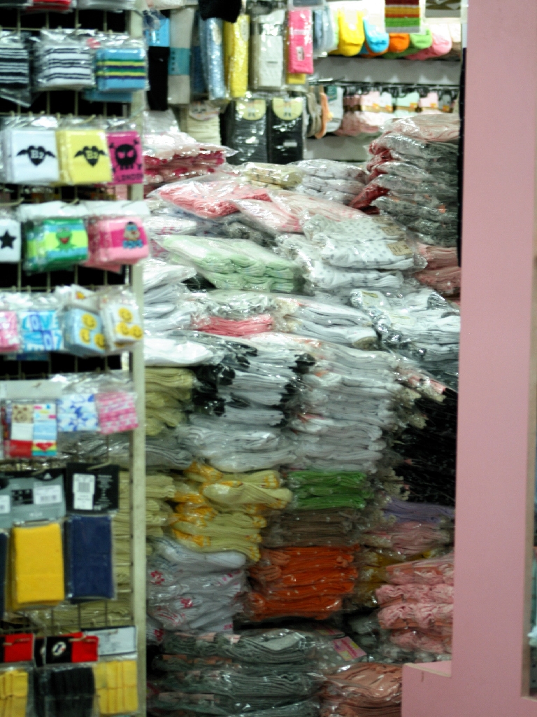 In einem der größeren Gebäude finden wir den größten Markt, den wir bis jetzt je gesehen haben. Ein riesiges Kaufhaus, das aus hunderten kleinen Shops besteht. Auf mehrere Etagen verteilt findet man hier alles Mögliche von Uhren und Schmuck über Taschen, Koffer, Nähwaren, Kleidung, Tassen und Krimskrams, Handy-Hüllen, Mützen und Hüte und unzählige andere Dinge.