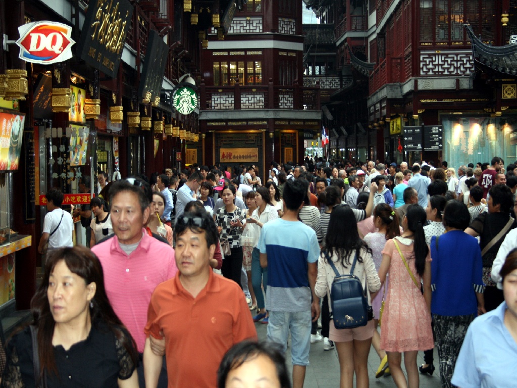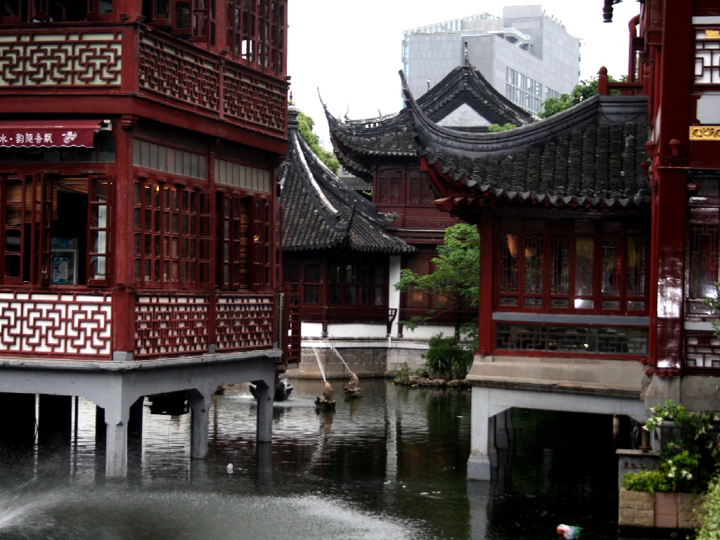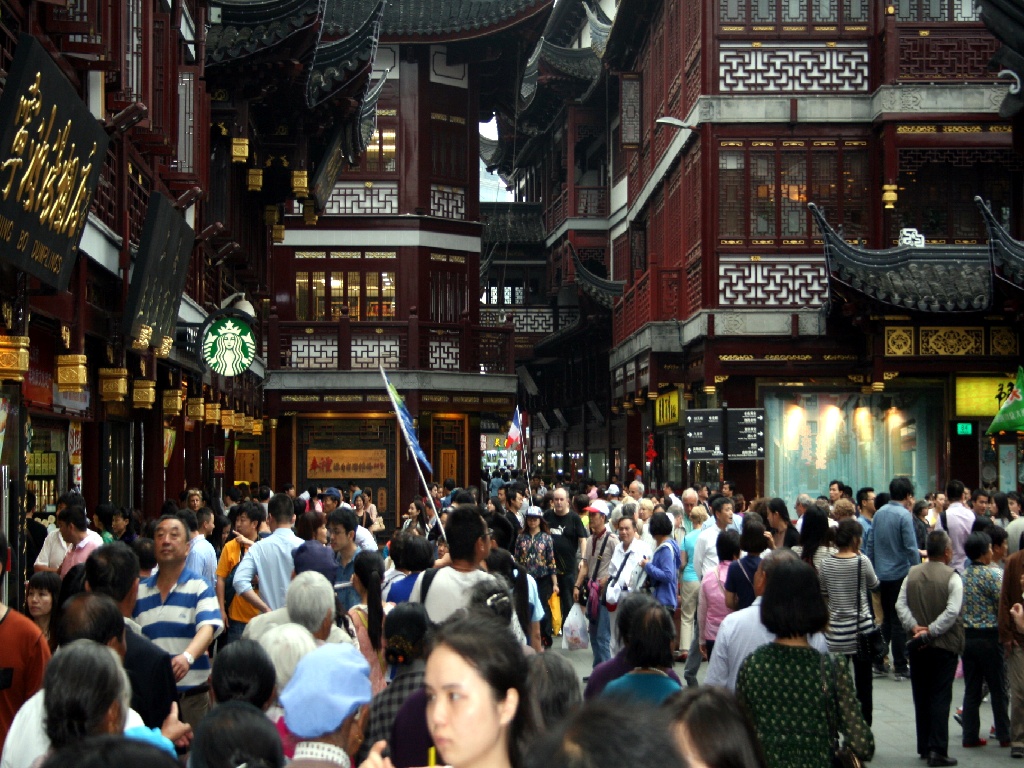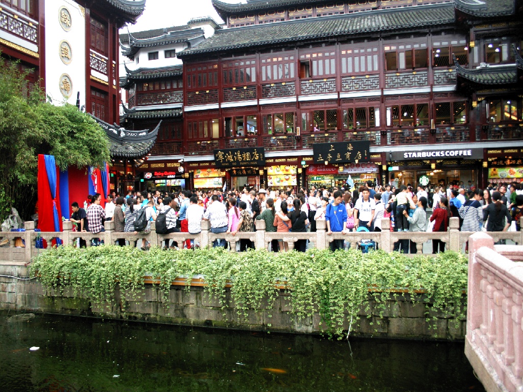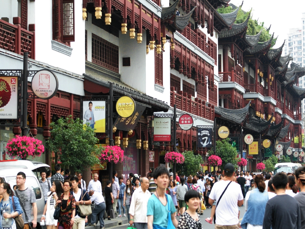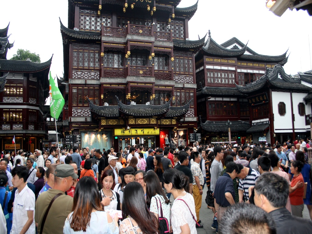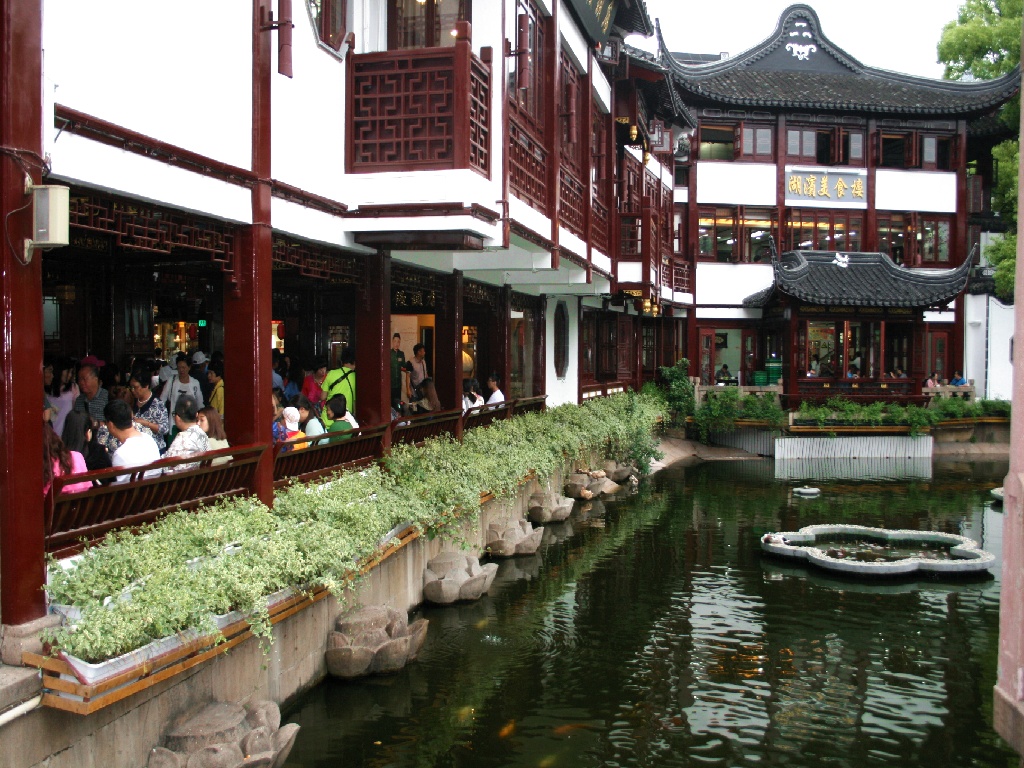 Rund um den Yu Garden stehen viele traditionelle chinesische Häuser, die unzählige Geschäfte beherbergen. Tausende Toruisten drängen sich hier durch die Straßen, ein Labyrinth von Häusern und Shops.
