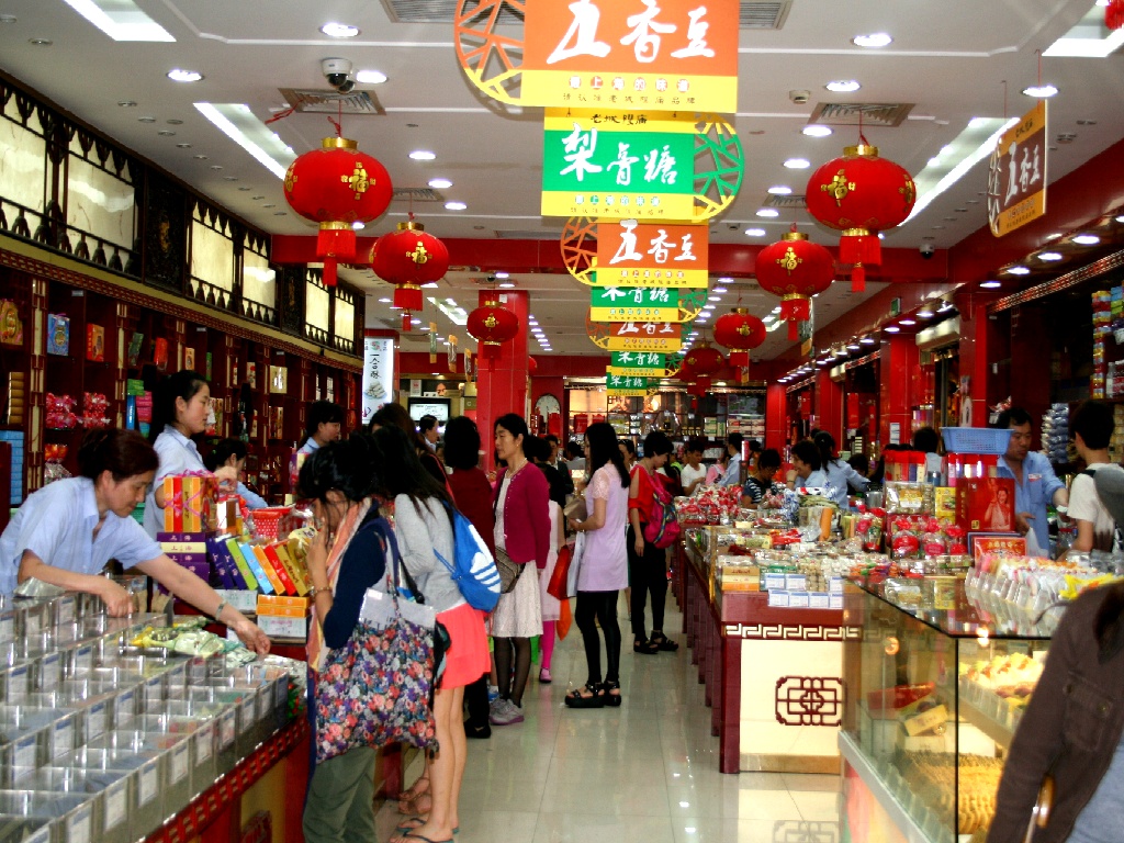 Neben den chinesischen Läden gibt es auch einen H&M sowie die üblichen Hägan Dasz, Starbucks und McDonalds.