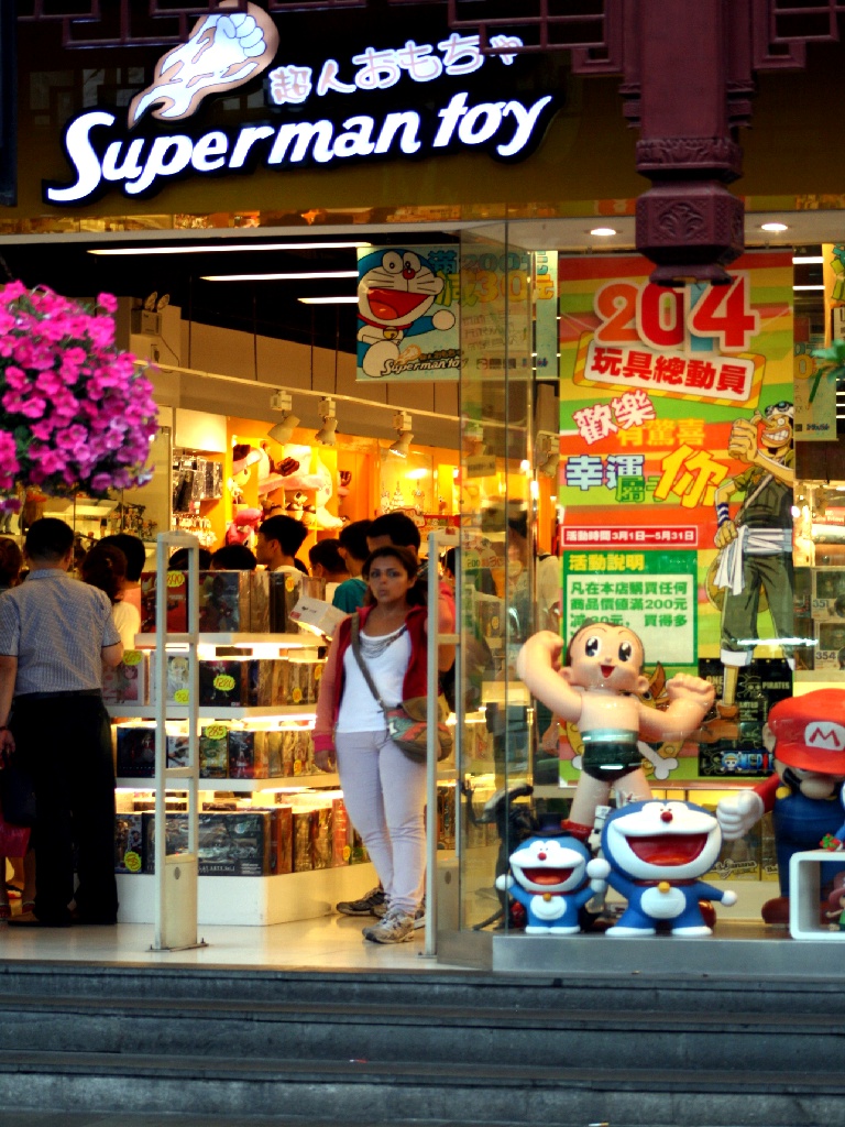 Im Superman Toy Shop findet man alle Arten von Manga-Figuren und Helden aus Comix und Animationsfilmen.