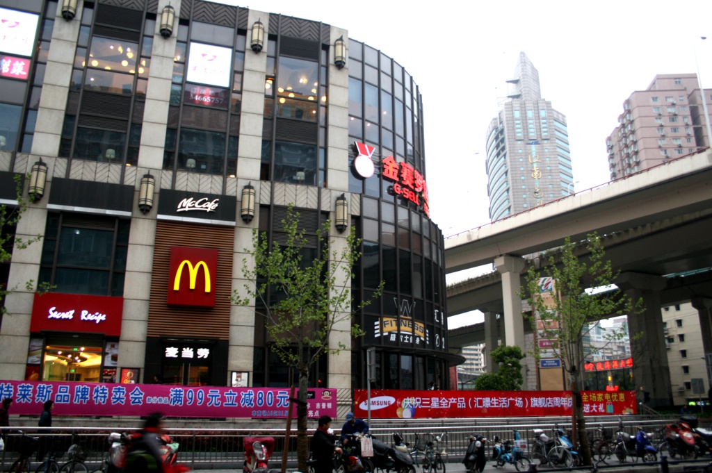 Gegenüber ein modernes Gebäude mit dem unvermeidlichen McDoof. Der ist hier ebenso zu finden wie Burgerking, KFC und Starbucks.
