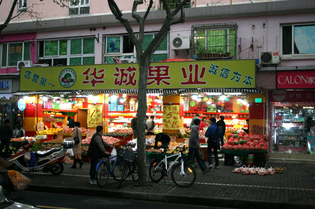 Zurück zur U-Bahn-Station und die Quxi-Rd nach Osten gehen. Gleich an der Kreuzung trifft man auf einen Minimarkt wo kleinere Mengen Fisch, Obst und anderes von Kleinhändlern angeboten wird.