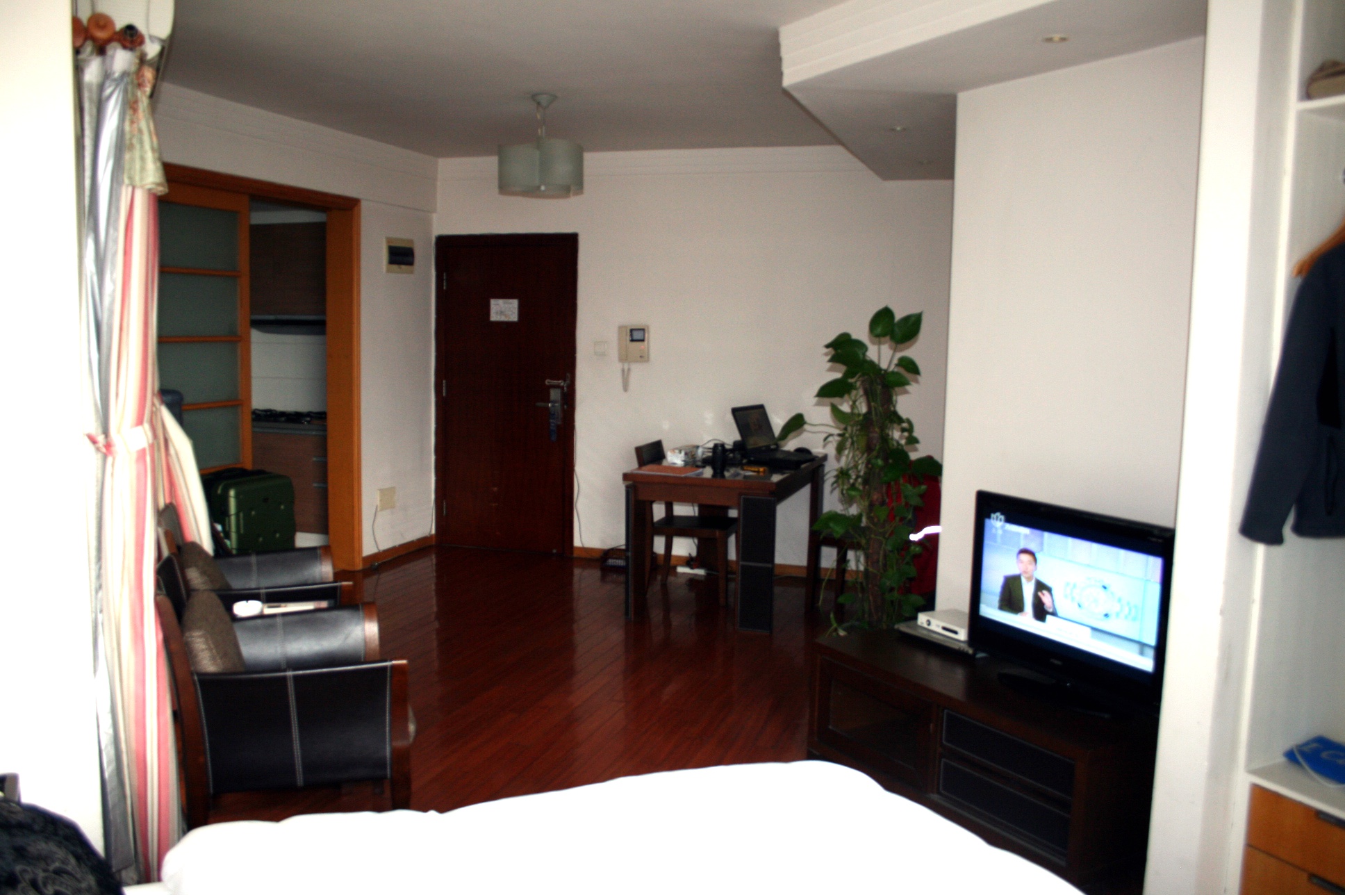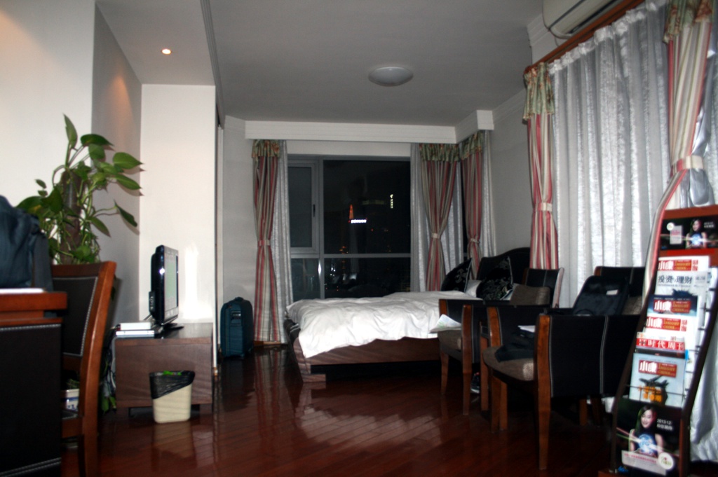Ein „serviced appartment“ mit kleiner Küche. Die Aussicht auf die Skyline ist fantastisch. Auch sonst ist das Appartment ok, ausser dass es keine Heizung gibt. Es wird abends schon reichlich kühl. Im Winter kann man hier nicht wohnen.